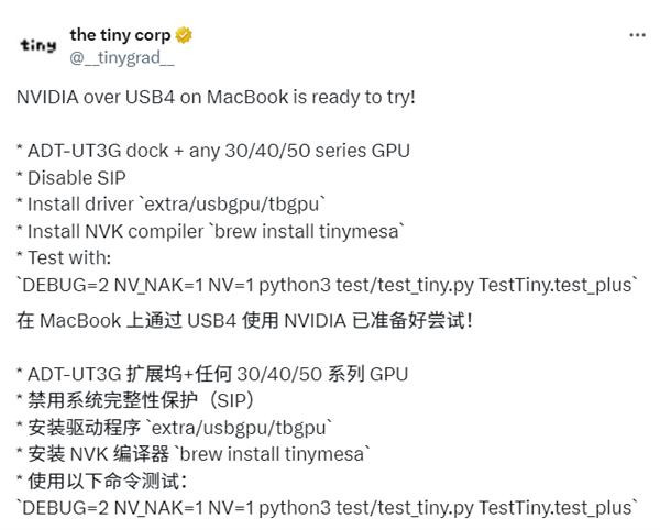 不过对于期待游戏或图形性能的用户来说,可能要失望了,因为这些驱动程序专为AI开发而设计,尚不能提供MacBook上的显示输出功能。